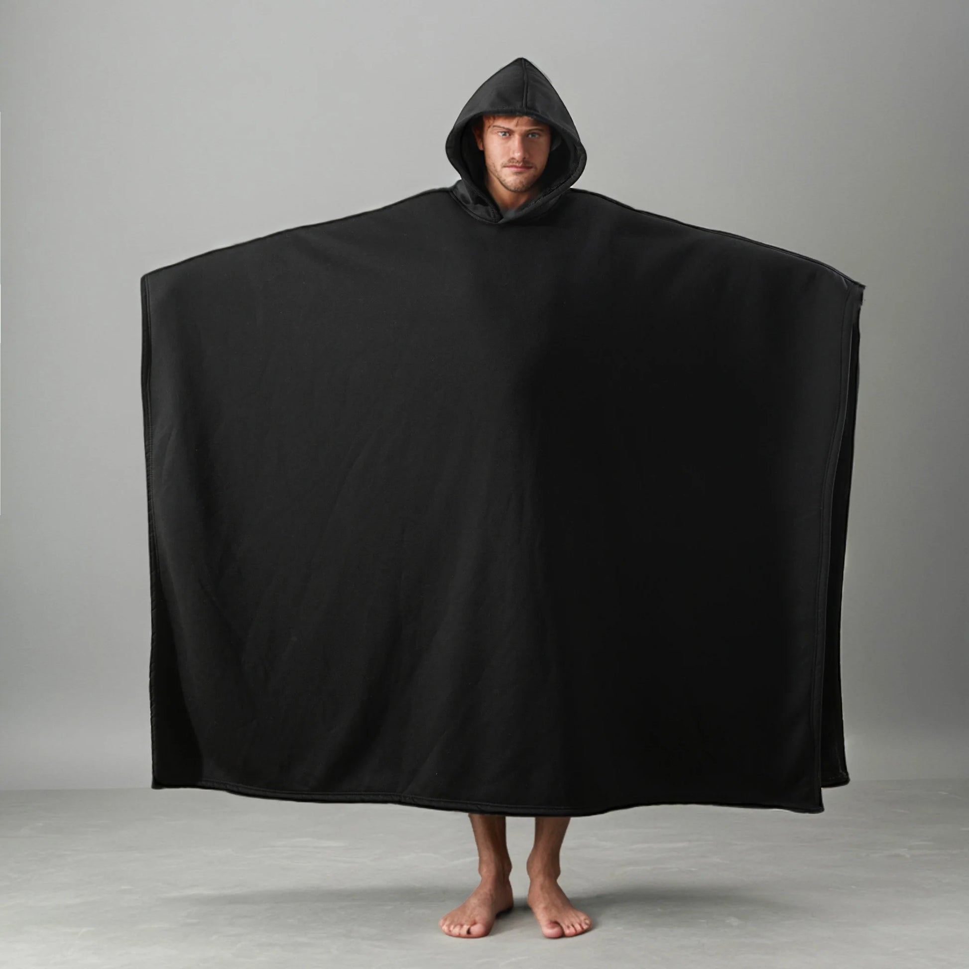 Entre plaid et manteau, la CozyCape™ redéfinit le confort à la maison.